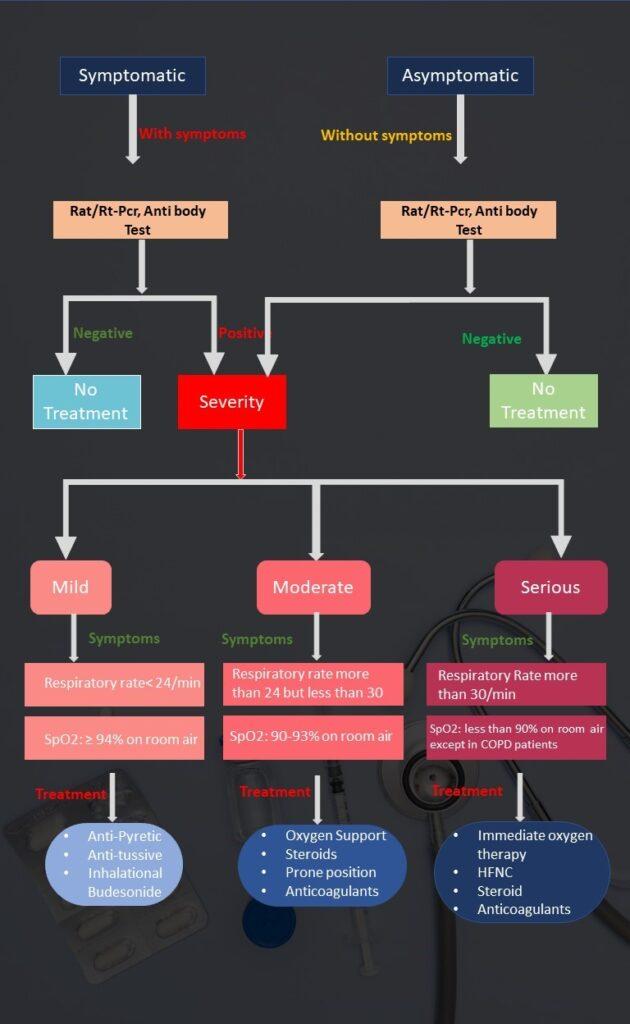 • Further treatment by steroids, anticoagulants and/or of immune modulators shall be guided by the results of the baseline and repeat investigations.